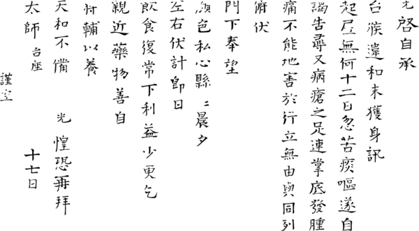 In this letter Suma Kuang explained his health condition and treatments he was taking to Taishih. |