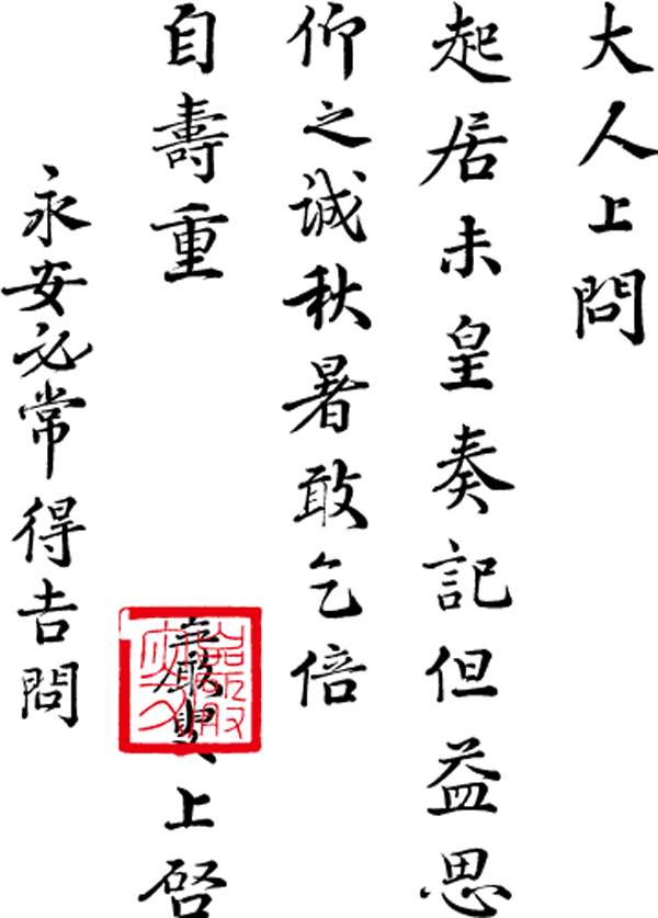 This was a letter Wang Yenshou replied to an elder who send him a letter asking about his recent condition, however, he did not return his letter immediately because he was occupied by other things. In the letter he gave his explanation why he had not replied sooner as well as reminded the elder to take care in the Indian summer days. |