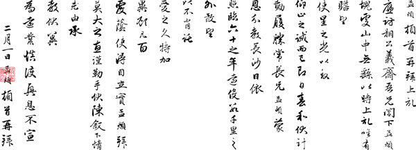 This is a letter Su Hsun wrote about his recent condition to his friend who held the official position of Tiehchu. Both of them were traveling to south, Su Hsun hoped they could travel together to Poyang Lake. However due to various reasons (mainly afraid of getting the attention of their political enemies), and both of them were not in perfect health condition, hence Su Hsun explained his travel route to the friend and also planed travel route for his friend. He hoped they could meet each other and visited Poyang Lake together. |