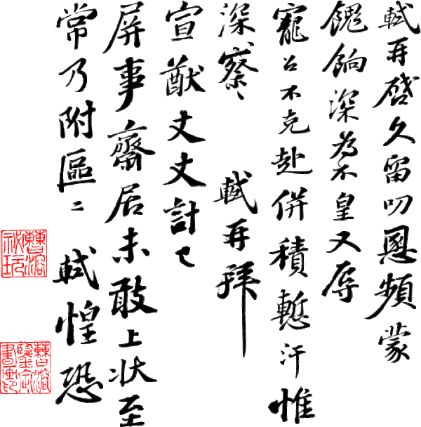 This was a letter of expressing appreciation. Su Shih was grateful to Hsuan Yuwen for his long term care of him. As now he was ordered by the empire to transfer to other place and he wished to say thanks to Hsuan Yuwen. |