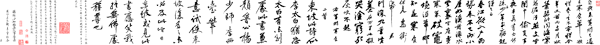 | 王羲之《行穰帖》,原跡已失傳。此為初唐時期的雙鉤填墨摹本,硬黃紙本,傳為米芾再臨本,24.4×8.9cm。二行,十五字,由北宋徽宗金泥題簽和宣和之印,曾為董其昌友人吳廷所藏,明董其昌有多處題跋,後入清宮,乾隆有題跋題詩及鑒賞印。據說《行穰帖》為八國聯軍侵略中國時,從圓明園(宮廷)流落到民間的國寶,同時流出的還有鐘繇《薦季直表》和蘇軾《黃州寒食帖》等。《行穰帖》後為大風堂張大千收藏。《行穰帖》歸大風堂後,張大千來日本曾攜此卷並一時存放于書法家西川甯處。現藏美國普林斯頓大學美術館。號稱美國藏中國書法第一名品。 |